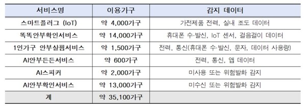 예를 들어, 가전제품을 규칙적으로 사용한다면 전력데이터를, 휴대폰 통화와 앱을 자주 사용한다면 통신데이터 기반한 스마트돌봄서비스를 적용해 더 정확하고 효과적인 방식으로 안부를 확인할 수 있게 된다.