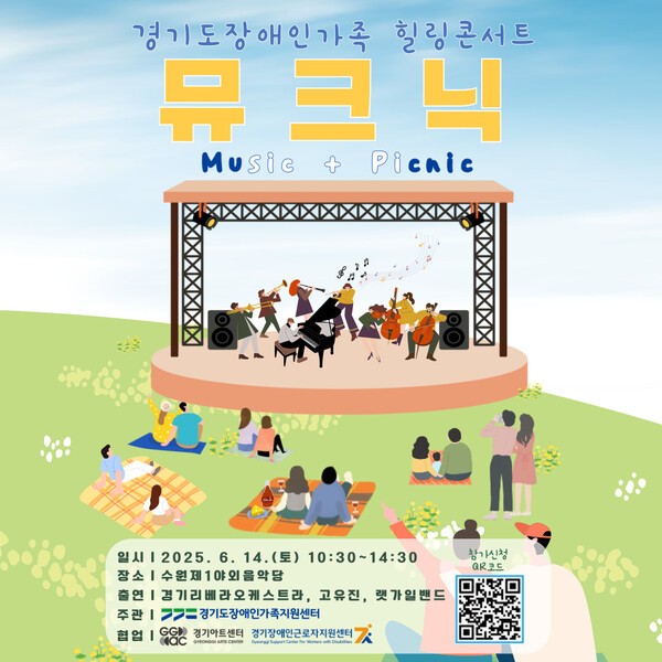 ‘뮤크닉’은 음악(Music)과 피크닉(Picnic)의 합성어로, 경기도 내 장애인가족이 자연 속에서 음악을 감상하고 휴식을 즐길 수 있도록 기획된 야외 힐링 콘서트다. 참가자들은 잔디밭 위에 돗자리를 펴고 자유롭게 음악을 즐기며 일상 속 쉼표를 만끽할 수 있을 예정이다.