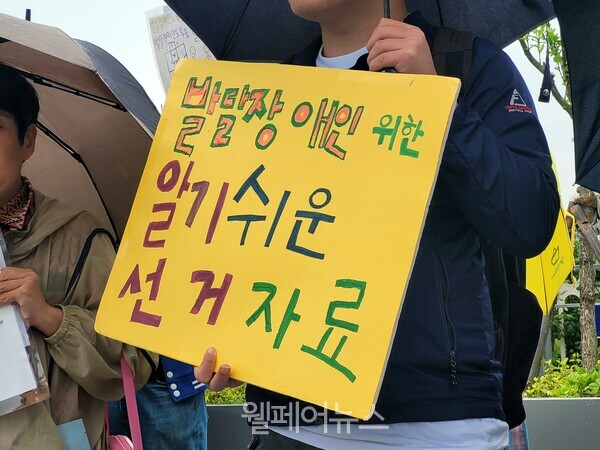 이어 “발달장애인 당사자도 한 명의 유권자다. 비장애인과 동등하게 참정권을 행사할 수 있도록 우리들의 목소리를 들어 달라.”고 요청했다.