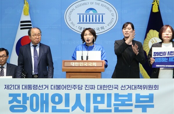 서 의원은 “오는 6월 3일은 제21대 대통령 선거일이다. 이날은 지금까지 우리 사회에서 가장 분리·배제·제한돼 왔던 차별의 역사로부터 탈피하는 날이 돼야 한다”면서 “위헌적 계엄으로 무너진 헌정질서를 회복하고 장애인의 정치세력화도 이뤄내야 한다”고 힘주어 말했다.