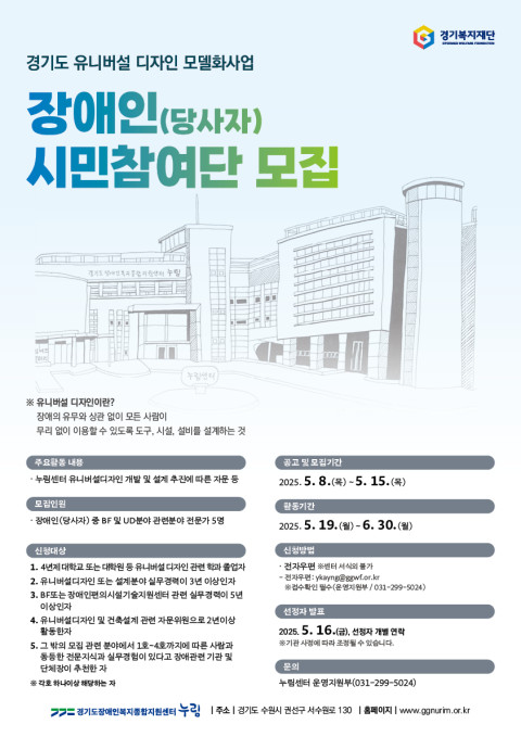 누림센터, 유니버설 디자인 모델화사업 장애인 시민참여단 공개모집
