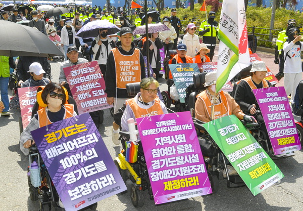이들은 장애인의 이동권·교육권·노동권 보장을 요구하며 "장애인의 탈시설 자립생활 권리를 보장해야 한다"고 역설했다.