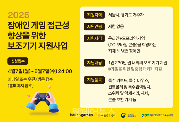 장애인 게임 접근성 보조기기 지원, 5월 7일까지 모집