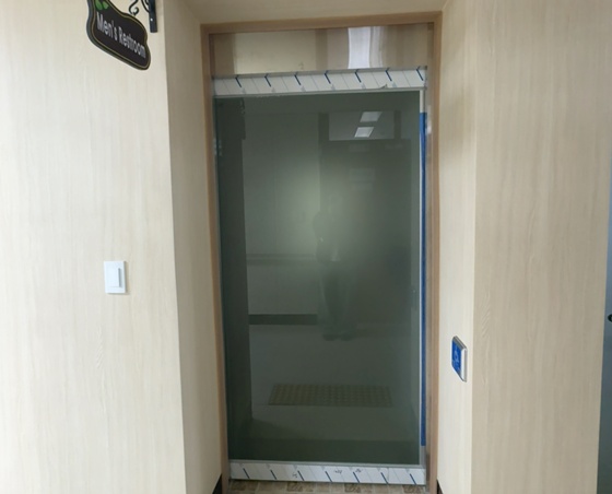 장애인화장실 출입문이 자동문으로 개선되어 접근성과 이용 편의성이 향상된 모습. ©포천장애인자립생활센터
