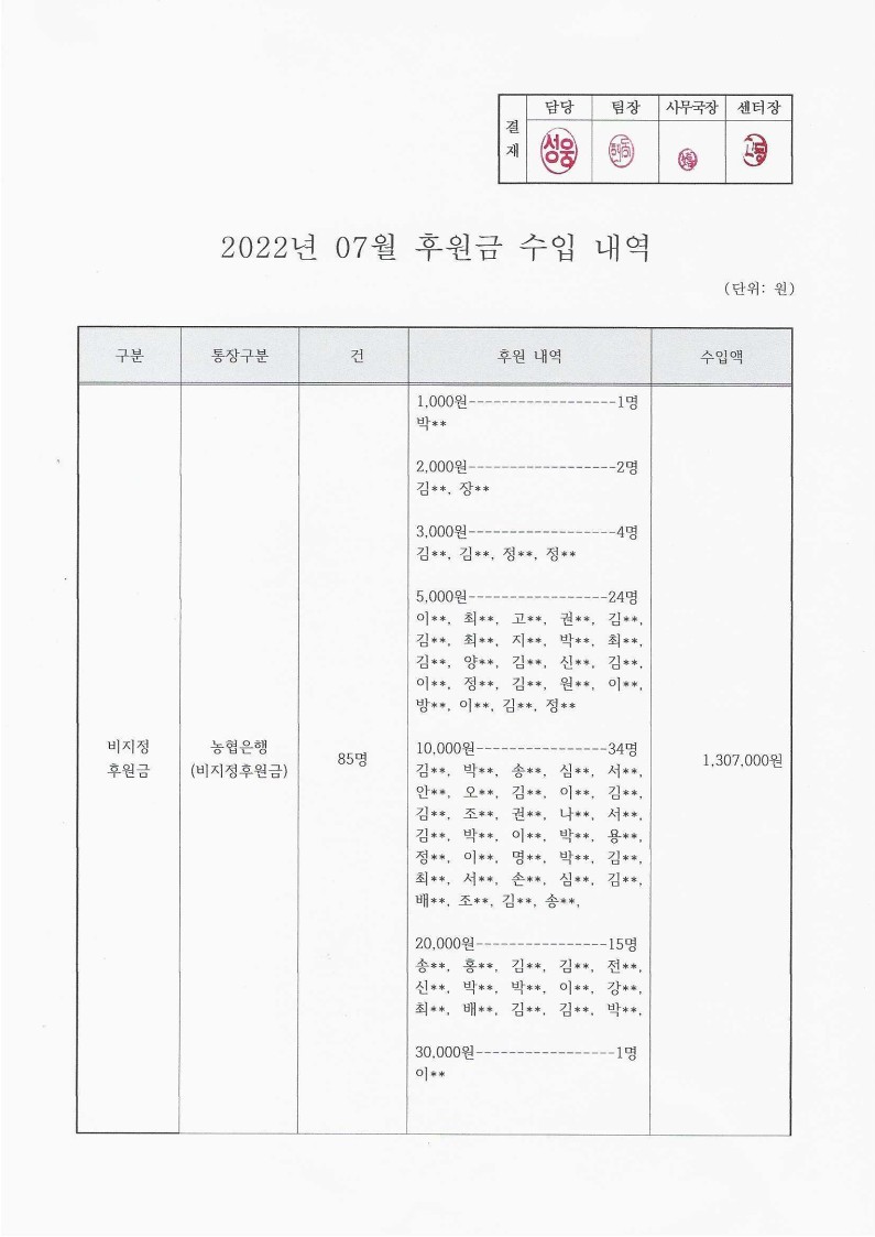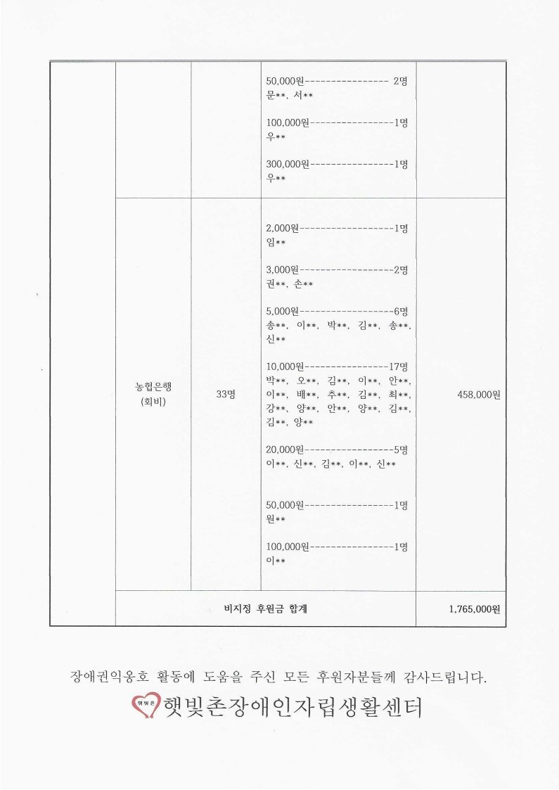 2022년 7월 후원금 수입 내역 보고 페이지 정보 작성자 햇빛촌 조회 1,755회 작성일 22-08-03 17:12 본문 2022년 7월 후원금 수입 내역 보고 목록 이전글햇빛촌 소식지 구독신청 페이지 22.08.10 다음글2022년 6월 후원금 수입 내역 보고 22.07.26 댓글목록 댓글목록 등록된 댓글이 없습니다.