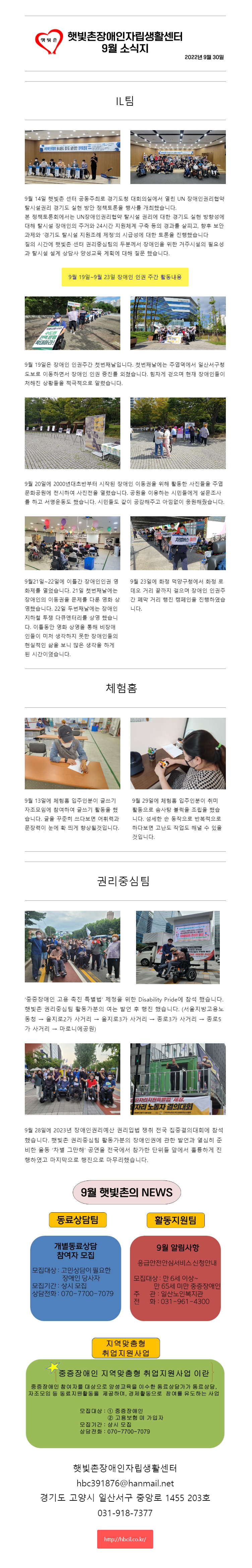 2022년 햇빛촌 9월 소식지 페이지 정보 작성자 햇빛촌 조회 1,769회 작성일 22-10-17 12:33 본문 . 목록 이전글2022년 8월 후원금 수입 내역 보고 22.11.08 다음글2022년 햇빛촌 8월 소식지 22.10.17 댓글목록 댓글목록 등록된 댓글이 없습니다.