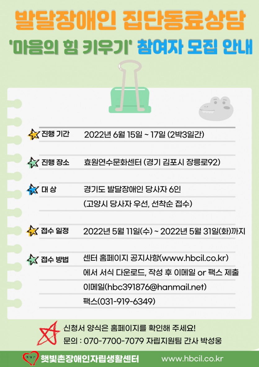 2022년 발달장애인 집단동료상담 참여자를 모집합니다.