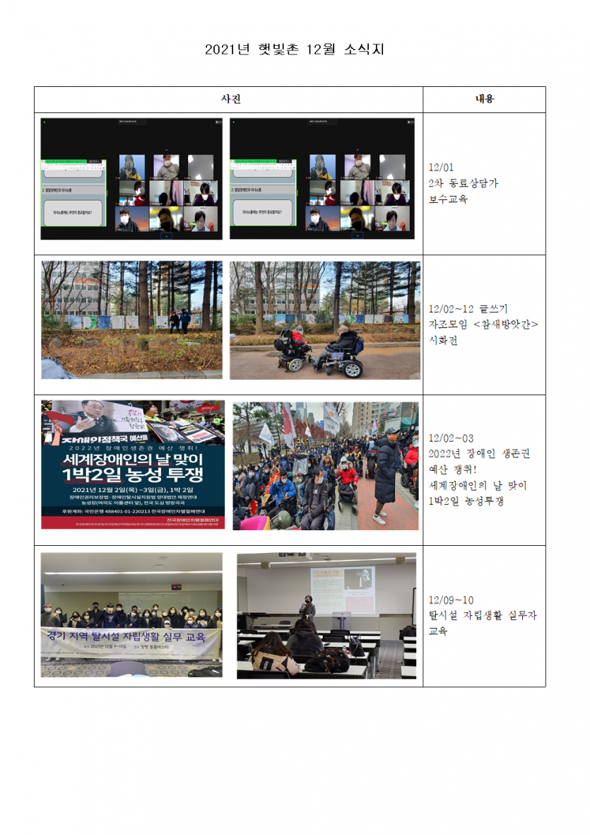 2021년 햇빛촌 12월 소식지 페이지 정보 작성자 햇빛촌 조회 1,958회 작성일 22-01-17 12:36 본문 . 목록 이전글2022년 정기총회 공고 22.02.04 다음글2022년 1차 IL 운영위원회 개최의 건 알림 22.01.14 댓글목록 댓글목록 등록된 댓글이 없습니다.