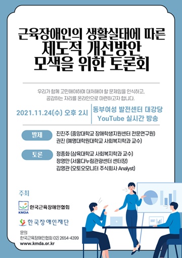 토론회에 관련된 더 자세한 사항은 한국근육장애인협회 홈페이지 (http://www.kmda.or.kr) 공지사항의 ‘근육장애인의 생활실태에 따른 제도적 개선방안 모색을 위한 토론회 개최’ 게시글을 통해 확인할 수 있다.