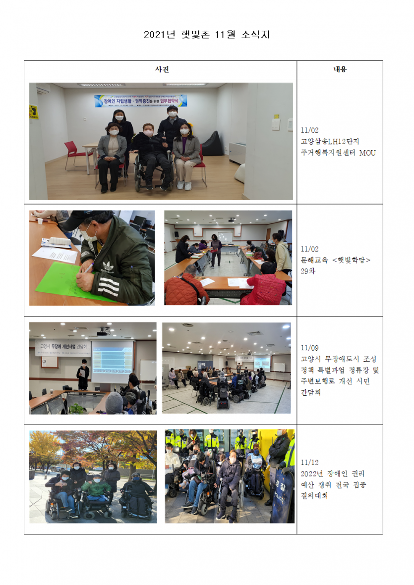 2021년 햇빛촌 11월 소식지 페이지 정보 작성자 햇빛촌 조회 1,840회 작성일 22-01-14 15:37 본문 . 목록 이전글2022년 1차 IL 운영위원회 개최의 건 알림 22.01.14 다음글2021 햇빛촌 E - BOOK 21.12.22 댓글목록 댓글목록 등록된 댓글이 없습니다.