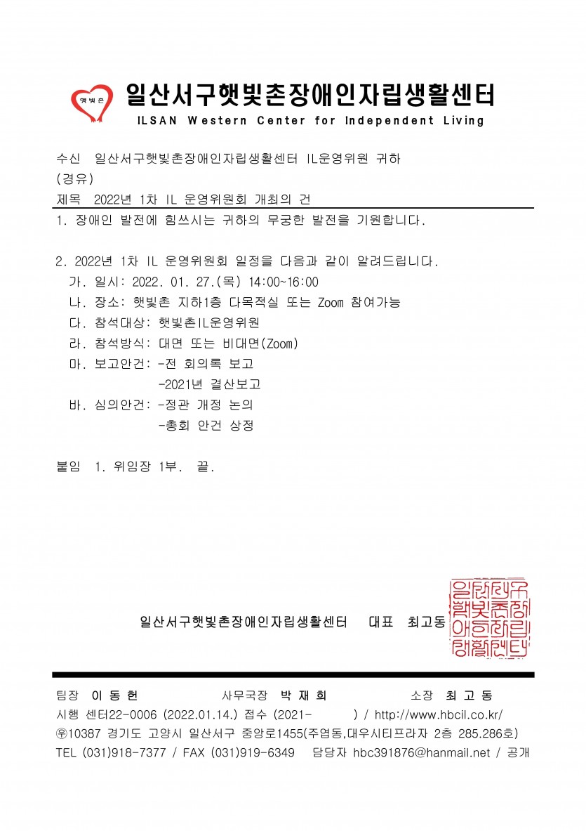 2022년 1차 IL 운영위원회 개최의 건 알림