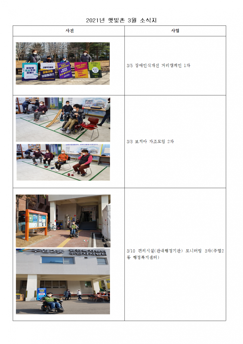 2021년 햇빛촌 3월 소식지 페이지 정보 작성자 햇빛촌 조회 2,139회 작성일 21-05-11 15:58 본문 . 목록 이전글2021년 중증장애인 지역맞춤형 취업지원사업 참여자 모집 21.05.11 다음글(2020) 연간 기부금 모금액 및 활용실적 21.04.29 댓글목록 댓글목록 등록된 댓글이 없습니다.
