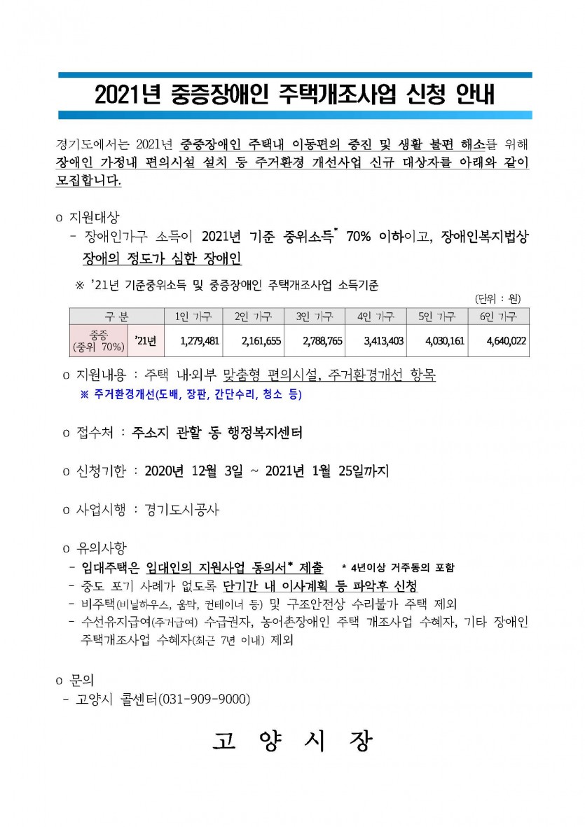 2021년 중증장애인 주택개조사업 신청 안내