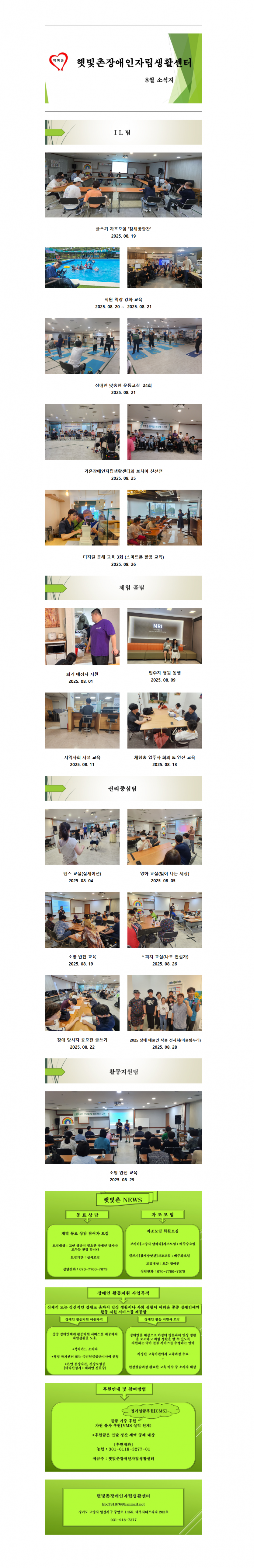 2025년 8월 햇빛촌 소식지 페이지 정보 작성자 햇빛촌 조회 807회 작성일 25-09-11 13:32 본문 2025년 8월 햇빛촌 소식지 목록 이전글햇빛촌장애인자립생활센터 채용 공고 25.09.26 다음글2025년 7월 후원금 수입, 사용 내역 보고 25.08.22 댓글목록 댓글목록 등록된 댓글이 없습니다.