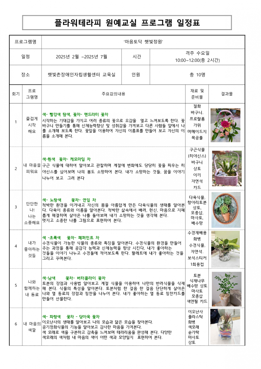 2025년 플라워테라피 원예교실 참여자를 모집합니다.