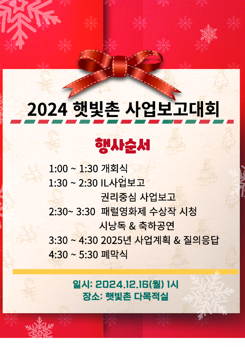 2024년 햇빛촌 사업보고 대회 안내