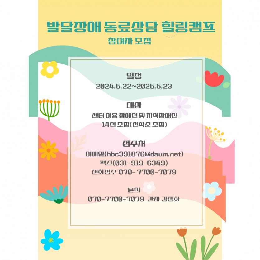 2024 발달장애 동료상담 힐링캠프 참여자 모집 안내