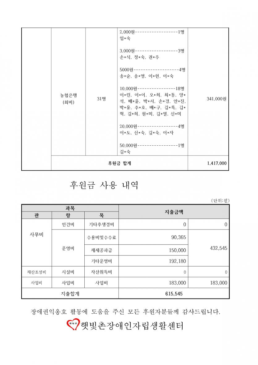 2024년 5월 후원금 수입 내역 보고 페이지 정보 작성자 햇빛촌 조회 1,499회 작성일 24-06-05 10:57 본문 2024년 5월 후원금 수입 내역 보고 목록 이전글2024년 2차 IL운영위원회 개최의 건 24.06.18 다음글2024년 4월 후원금 수입 내역 보고 24.06.05 댓글목록 댓글목록 등록된 댓글이 없습니다.
