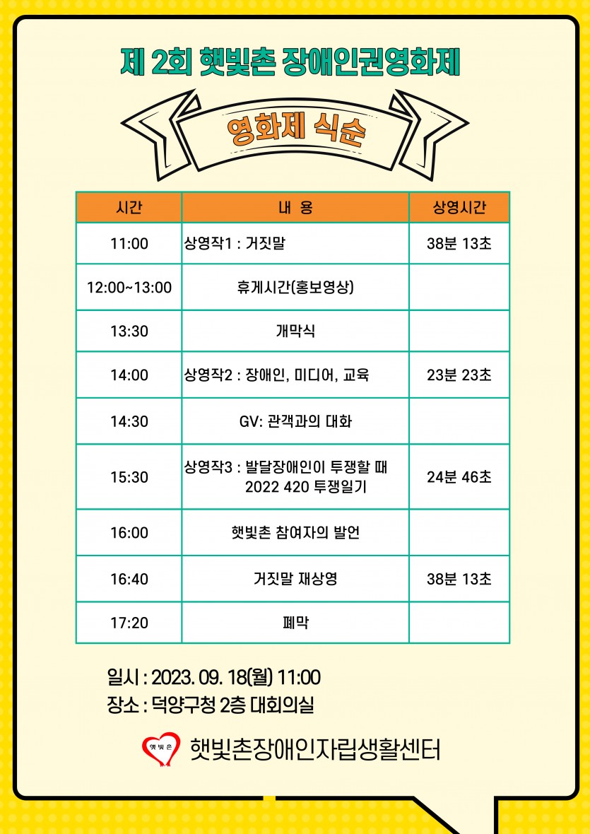 일별 행사 : 18(월) - 영화제 (덕양구청 대회의실) 11:00~17:20