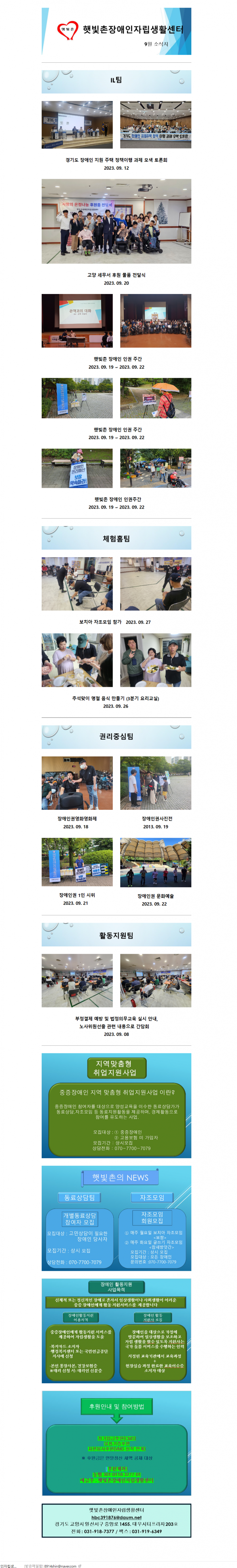 2023년 9월 햇빛촌 소식지 페이지 정보 작성자 햇빛촌 조회 1,694회 작성일 23-10-13 16:05 본문 2023년 9월 햇빛촌 소식지 목록 이전글2023년 햇빛촌 임시 운영위원회 개최 공지(2차) 23.10.27 다음글2023년 7~8월 햇빛촌 소식지 23.09.21 댓글목록 댓글목록 등록된 댓글이 없습니다.