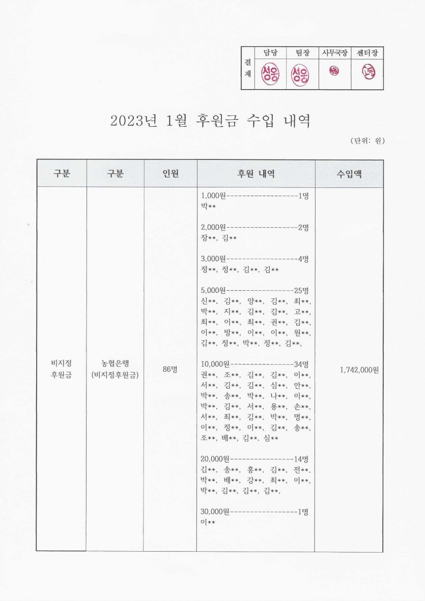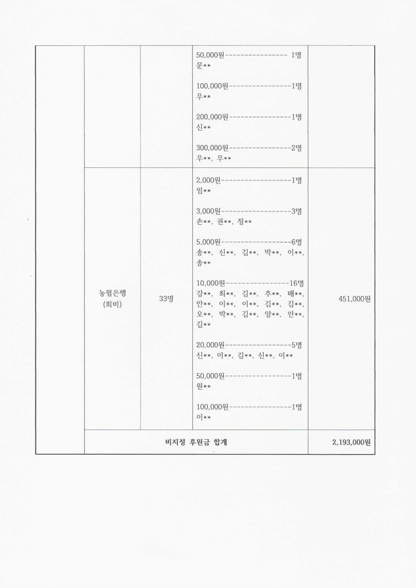 2023년 1월 후원금 수입 내역 보고 페이지 정보 작성자 햇빛촌 조회 1,623회 작성일 23-04-11 10:37 본문 2023년 1월 후원금 수입 내역 보고 목록 이전글2023년 2월 후원금 수입 내역 보고 23.04.11 다음글2023년 정기총회 영상 23.03.15 댓글목록 댓글목록 등록된 댓글이 없습니다.