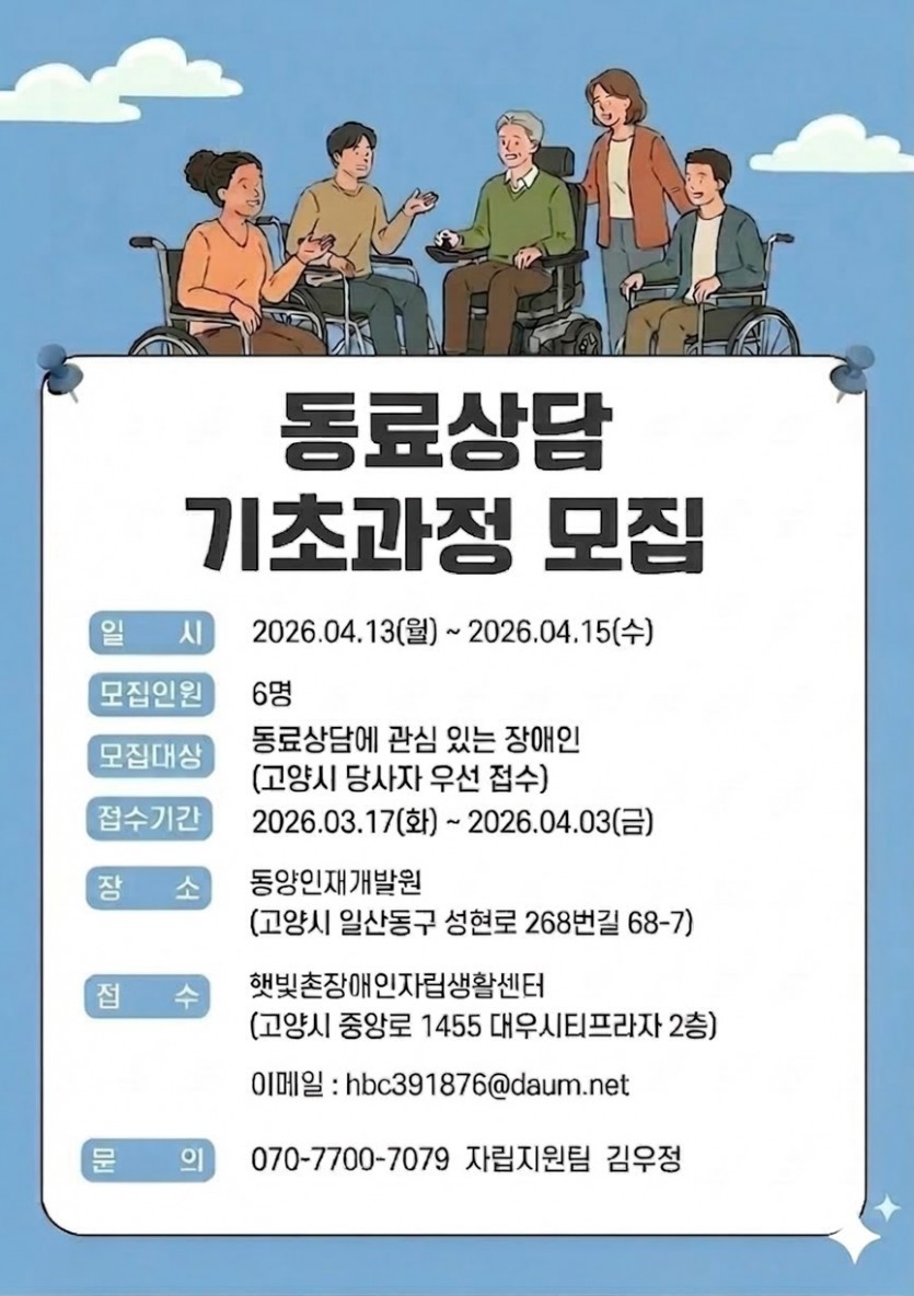 2026년 집단 동료상담 기초과정 참여자 모집이 마감 되었습니다.
