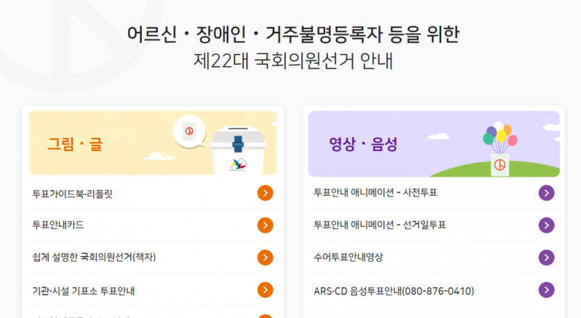 어르신.장애인.거주불명등록자 등을 위한 제 22대 국회의원선거 안내 사이트도 활용하세요