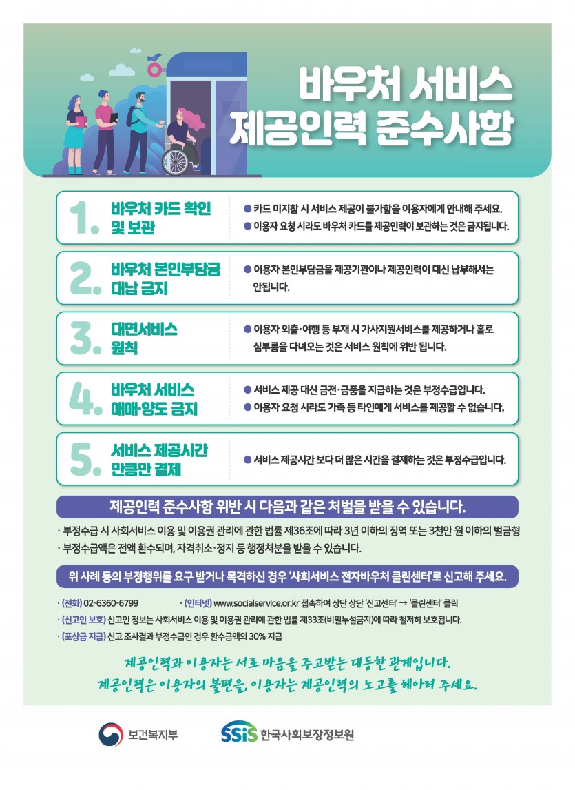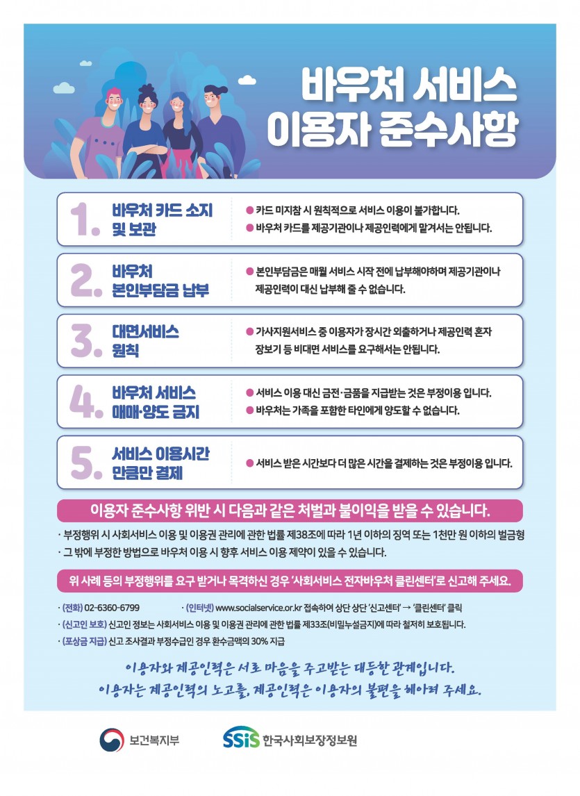 사회서비스 바우처 서비스 제공인력. 이용자 준수사항 안내드립니다